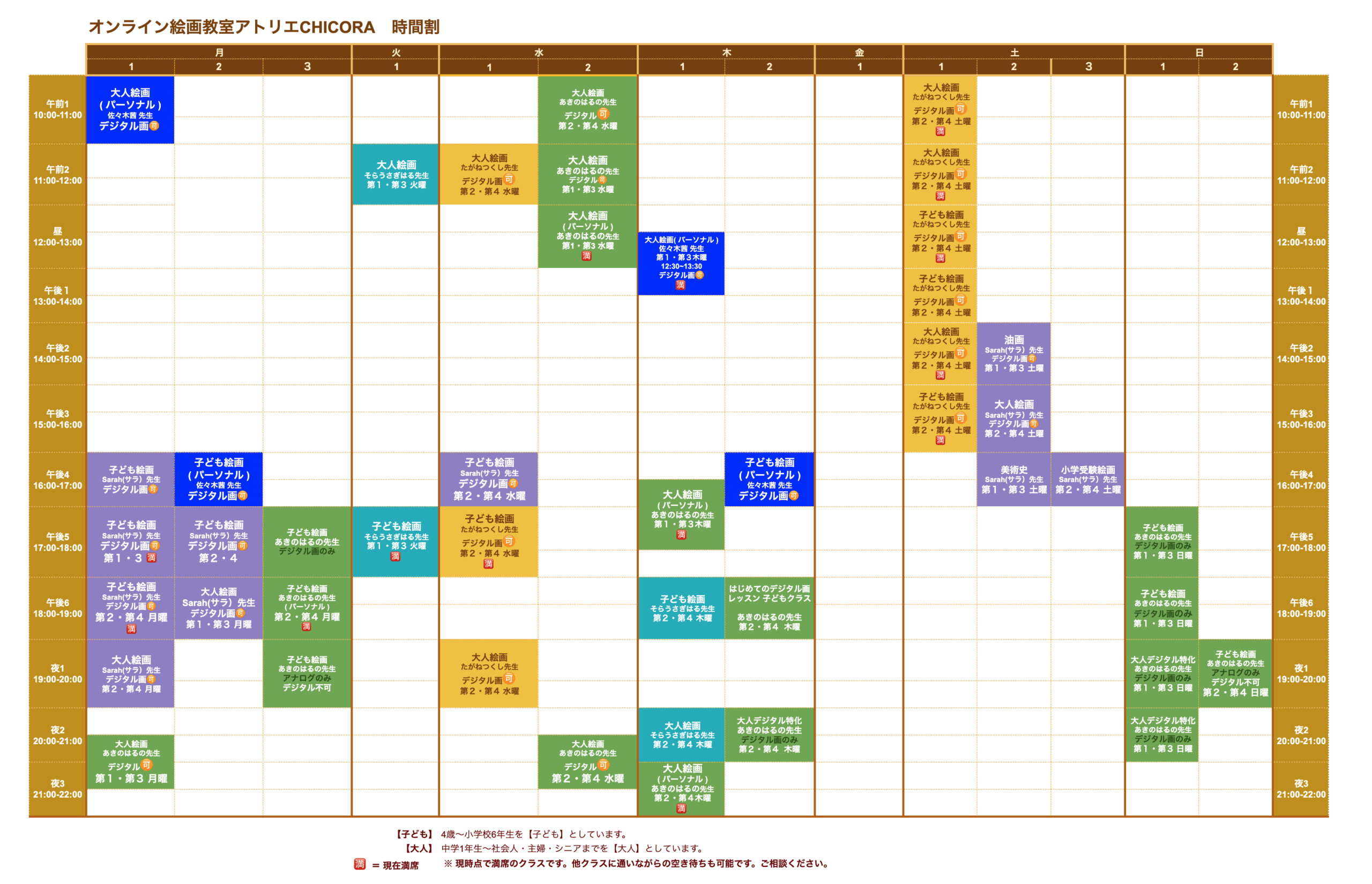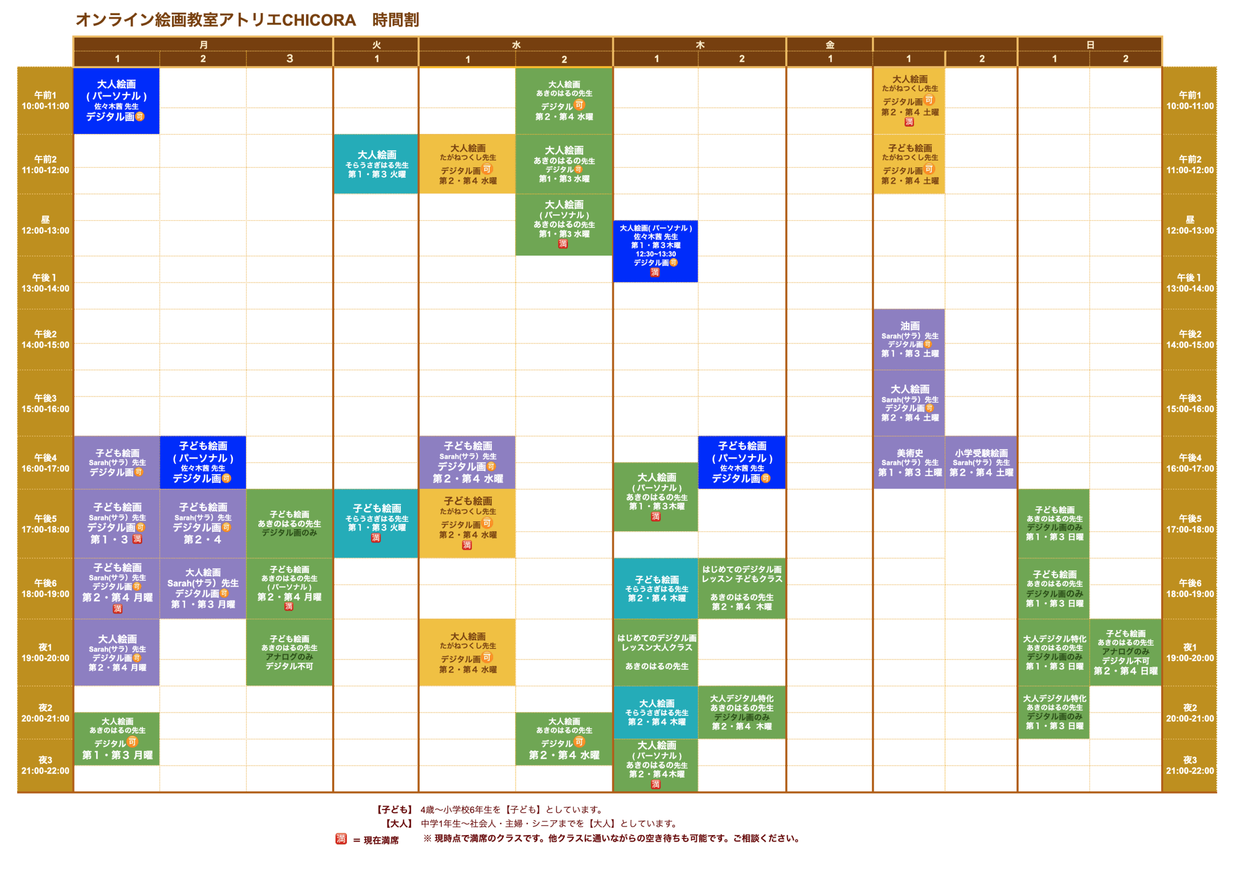オンラインだと何かと不安になると思います だから体験レッスンを受けて実際の授業体験をしてからご入学いただけます。 スマホだとスケジュールが見にくくて申し訳ございません。。。 ギャラリーだよ 作品やどんな教室なのか不定期にギャラリーは更新中です。 超絶技巧! 1年前は初心者でした かわいいよね このもじゃもじゃ感がクセになる 素敵な案件イラスト 生と死 絵はその時の心情を映すらしい 元中学美術教員せんせい作! 鬼の描きこみ量 こういう家族憧れます 出版おめでとう! 出版イベントトークショー チョークと絵具 墨絵というんです 美男! 眼力 閃いた。寝起きじゃないよ。 その先に彼女は何を見るのだろう ・・・? CHICORAのぬいぐるみあるんだ デジタルだと背景描くのも早い ランランラン かわいい・・・ 絵本イラスト スニーカー スゴロクゲーム 真剣 誰もいない教室 龍 ふたりの秘密かな